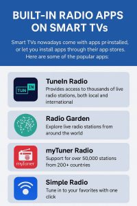 ✅ Smart TVs from Stanlee India seamlessly support these apps! Simply connect your TV to Wi-Fi, access the app store, and download your desired radio app.