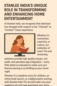 Whether it a bedtime story for children, an online book launch, or a digital poetry evening, with Stanlee India TVs we will make sure your audience not only saw and heard your story; they felt it.