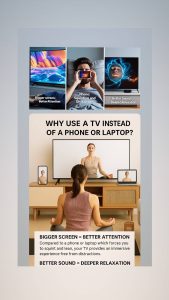 Compared to a phone or laptop which forces you to squint and lean, your TV provides an immersive experience free from distractions.